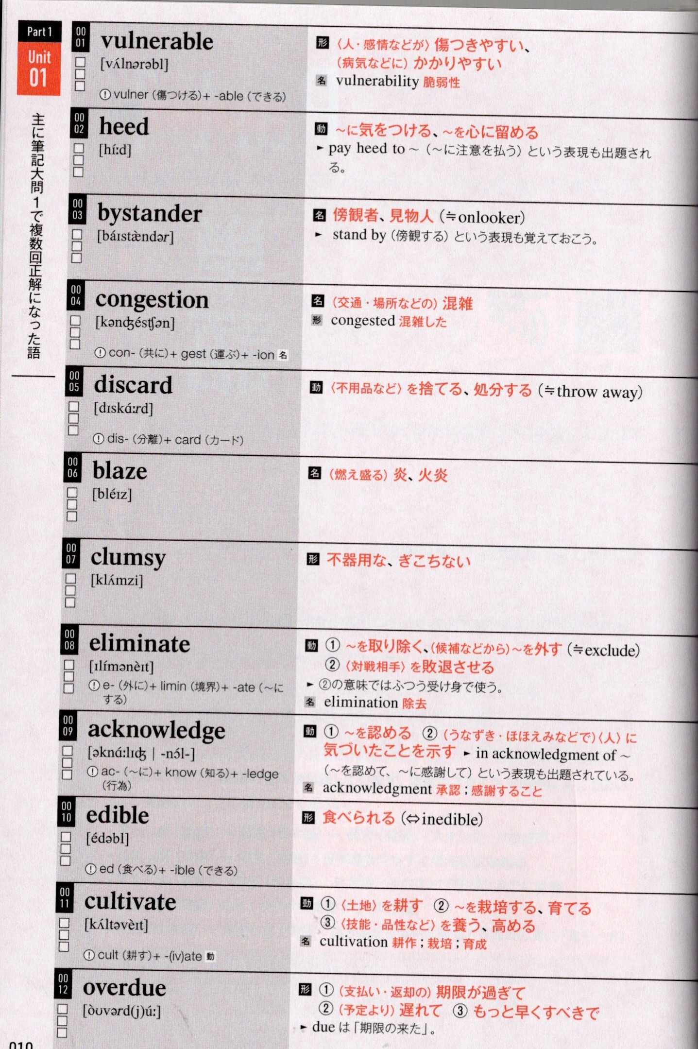 ① vulnerable ② heed ③ bystander ④ congestion